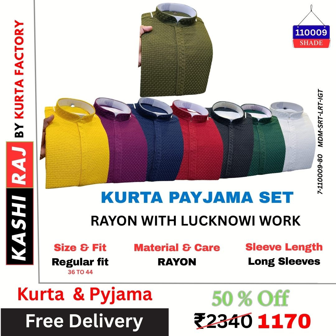 #KurtaFactory #LucknowiKurta #MensEthnicWear #RayonKurtaSet #TraditionalMensFashion #KurtaWithPajama #WeddingKurtaSet #MensFestiveStyle #Code110009 #IndianMensClothing