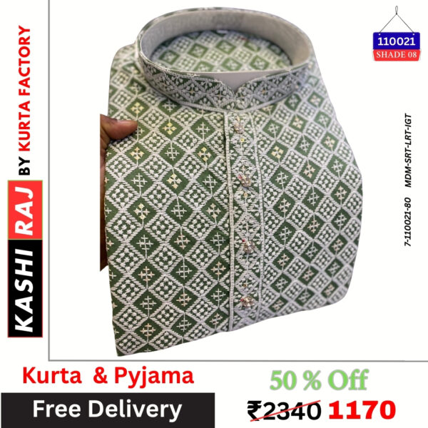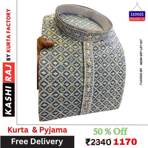 • Kurta: Premium fabric with white thread embroidery & sequence work