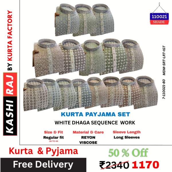 White Dhaga Sequence Work Kurta Pyjama 110021