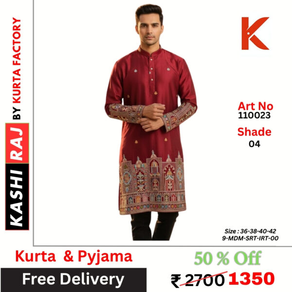 Bring a royal charm to your ethnic wardrobe with our Heavy Jacquard Kurta Pyjama Set, crafted for men who love bold elegance. Made from premium heavy jacquard fabric, this kurta features a rich woven texture with intricate detailing that gives it a luxurious and majestic appeal. Perfectly paired with a comfortable pyjama, this outfit is designed to make you stand out at weddings, receptions, cultural functions, and festive events with confidence and class.