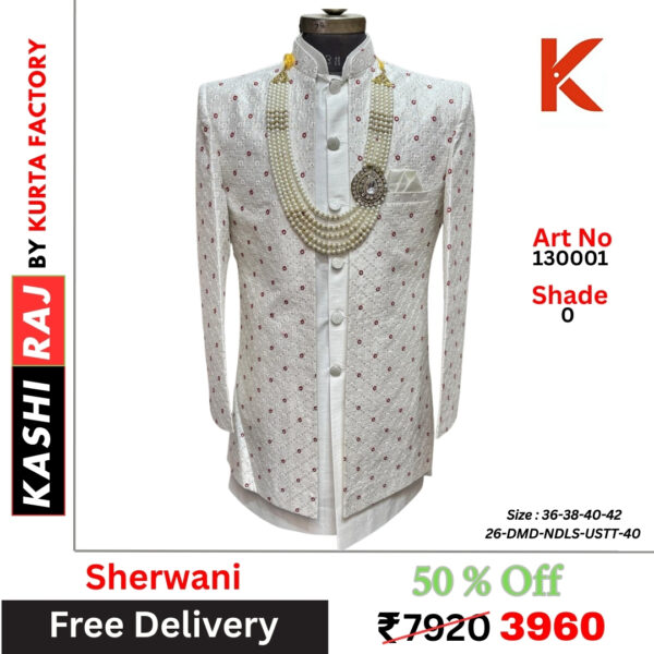- Tailored Fit: Designed to offer comfort and style, our Sherwanis are tailored to provide a perfect fit for every groom.