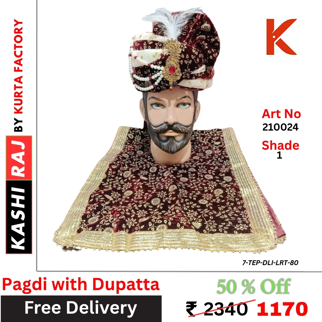 πŸ‘” Coordinated Look: The matching dupatta complements the pagdi in design and color, offering a cohesive and elegant style.