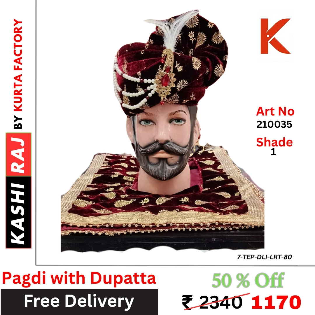 👔 Coordinated Look: The matching dupatta complements the pagdi in design and color, offering a cohesive and elegant style.