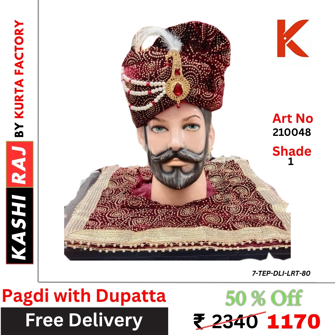 👔 Coordinated Look: The matching dupatta complements the pagdi in design and color, offering a cohesive and elegant style.